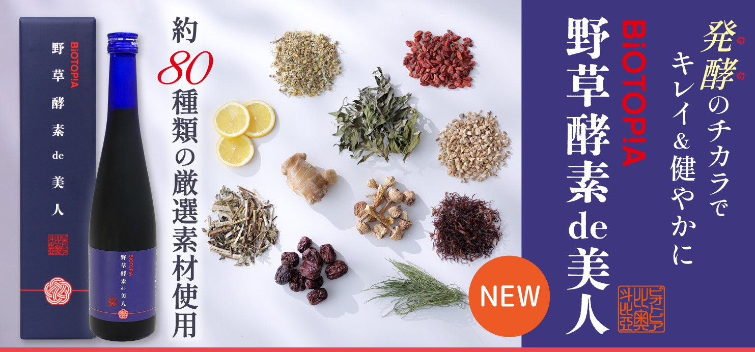 BIOTOPIA(神奈川県足柄上郡大井町)では、「食・運動・癒し」をコンセプトにした未病改善事業・施設を運営しております。これまでに、BIOTOPIAオリジナル商品として「かんたん ぬか美人」「ビオトピアの湯」を販売しており、皆さまの健康的なライフスタイルの形成に取り組んでおります。この度、ウェルライフの新提案、酵素ドリンク『野草酵素de美人』を発売いたします。毎日の健康習慣に、美しく健やかな日常を実現するお手伝いをいたします。