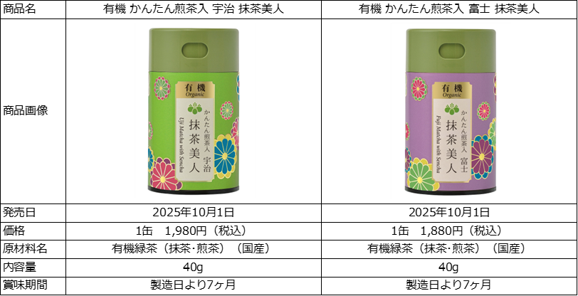 株式会社ブルックス(本社:神奈川県横浜市、代表取締役社長:小川裕子)は、手軽に使える振り出しタイプの粉末茶「かんたん茶」シリーズより、有機の抹茶と煎茶を使用した『有機かんたん煎茶入 宇治抹茶美人』・『有機かんたん煎茶入 富士抹茶美人』を2025年10月1日より新発売いたします。濃厚な抹茶に、繊細な香味の煎茶を配合したことで、抹茶の飲みやすさを追求しました。