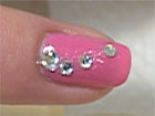 トップコートをつけたスティック棒にラインストーンをつけ取る